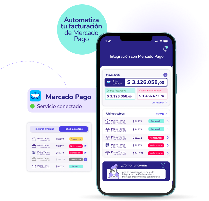 Con la nueva integración de Gestorando + Mercado Pago, tenés la solución ideal para que no te olvides nunca más.
